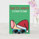 If you know someone who loves french bulldogs and has a good sense of humour, this funny frenchie Christmas card is ideal for sending to them during the festive holiday. The design features a cartoon-style illustration of a light fawn coloured french bulldog wearing a red Santa hat and sunglasses with the wording “Santa Paws is comin’ to town" written on the front. Wording on the inside reads "Wishing you a pawsome Christmas” but can be changed to your liking. This design is also available with different coloured french bulldogs.