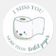 Funny sticker for your loved friends, featuring an ironic toilet paper illustration and the text "I miss you more than toilet paper".