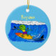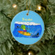 Funny frilled neck lizard surfing cartoon ceramic tree decoration