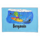 Our funny lizard surfing with sharks. Add your own text to make it special.