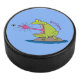 Funny frog and fly cartoon hockey puck