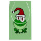 Adorable sitting frog in Santa hat Christmas original art gift bag. Can also add custom text and change background colour when ordering.