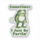 Add a splash of cheeky humor to your designs with this vintage-style illustration of a plump green frog letting one rip. Featuring the playful phrase “Frogs Just Be Fartin’” in bold distressed text, this transparent PNG is perfect for t-shirts, mugs, stickers, and more. Ideal for meme lovers, frog fans, and anyone who appreciates a good laugh. High-resolution and legally safe for commercial use.