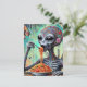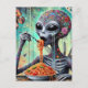 Funny Funky Alien Eating Spaghetti Collage Postcard