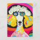 A digitally created, bright and colourful, funky contemporary style portrait of a poodle dog.