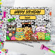 This bold and playful "Gangsta Cats" birthday card features a quirky crew of cool cartoon cats against a graffiti-style brick wall backdrop. With colourful outfits, cheeky expressions, and a mix of adorable and rebellious vibes, it's perfect for cat lovers who enjoy a bit of humour and street style.