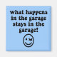 What happens in the garage, stays in the garage! Funny man cave garage shirts, tshirts for men and some women who hang out in the garage with their friends. Humourous man cave tees with winking smile face.