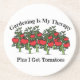 Tomatoes are a staple for most every gardener and none of us can wait for those juicy red fruits. Fun graphic design with a row of tomato plants surrounded by the text Gardening Is My Therapy Plus I Get Tomatoes