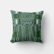 Funny throw pillow with contemporary green circuit board and white electronic circuit pattern. Ornate, elegant and funky hipster design for the technology nerd or geek, science teacher or engineer, modern technology lover, artistic interior designer, artsy popular hip trendsetter, vintage mod retro, modernist, nouveau deco art style or abstract geometric motif lover.