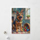 Bring some humor to the holidays with this playful German Shepherd design! This vibrant illustration captures the moment of a festive 'dog disaster,' featuring a lovable GSD with a string of colorful Christmas lights adorably tangled around its head. A perfect design for anyone who knows the chaos and joy of owning a large dog during the holiday season. Ideal for fun ornaments, cheeky Christmas apparel, and humorous gift tags. Share a laugh this Christmas with this mischievous dog art!
