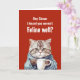 Anyone who loves cats would love this card. I wrote a poem inside concerning her health. Card went over great! Cat design was perfect. Colors and printing were purr-fect . Will order another one. Cute!!!