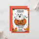 Funny Ghost with pumpkin and Leaves the best Halloween party invitation