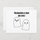 funny postcard to celebrate halloween with good and funny vibes, funny ghost " marshamallow or ghost, who cares!"