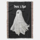 Throw Blanket decorative home decor furnishing accessory printed with customisable text template Peek A Boo typography printed with a Funny Ghost Of Halloween Past Drawing hand drawn graphic art design artwork illustration by TheFabricSeal print on demand shop at Zazzle.com #ZazzleMade ©️Original. https://www.zazzle.com/store/thefabricseal