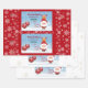 Cute, funny, and also elegant Christmas wrapping paper sheets with Santa in his red costume (holding a candy cane) and his favourite reindeer, Rudolph, behind him. The text reads "Merry Christmas! This gift is for Jayden from Santa Claus" -- make sure you personalise the kid's name. You can also change the greeting, if you wish. The design also includes two red baubles with snowflakes, and a snowy landscape, in the midst of a winter scene with snowflakes on a Christmas red background.