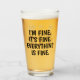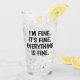 Funny gingerbread men in parody, spoof, to the bunny rabbits that says "My butt hurts". These 3 funny gingerbread men cookies with speech bubbles. The first gingerbread man has a bite on his leg and he says: "My Leg Hurts!", the other one has a bite on his ear and he says: "What?", the third one's eyes has been eaten and he says: "Where are you guys?". Especially fun for the Christmas Holiday Season. Cute Gingerbread man cartoon. One side says It's fine. I'm fine. Everything is fine. Great after the hard year we've been having in 2020 with the coronavirus / COVID-19 Pandemic.