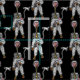 A funny illustration of a giraffe in space. This giraffe is wearing an astronauts space suit and there is a space shuttle in the background.