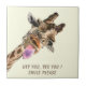 Custom Text - Tiles with Funny Giraffe Tongue Out and Playful Wink - Smile Animal Cartoon Drawing Tile - or Choose / Add Your Unique Text / Font / Color - Make Your Special Gift - Resize and move or remove and add elements / image with customization tool ! - Drawing and Design by MIGNED. You can also transfer my designs to more than 1000 Zazzle products. Smile - Be Happy :)