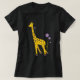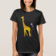 Customisable cute and funny maternity T-shirt with a cute giraffe nibbling on a purple flower and holding some flowers with its tail while skating with roller skates which wheels are made of flowers.