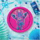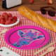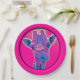 A funny pose from a cute giraffe - sticking out his tongue! Funky cheerful neon colours of pink and blue. Fun sixties retro pop art style.