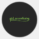 Funny Girl So Confusing Green Text Sarcastic Quote Classic Round Sticker