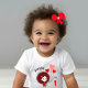 Beautiful, cute, along great material, and quality. Material of the shirt is durable so that one can pass it along to another child after the baby gets bigger. Top notch job on the printing. Visually good in person.
