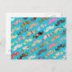 Funny Girly Turquoise Floral Aztec Moustaches Postcard