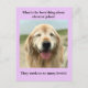 Everyone likes a good joke, especially doggies! This postcard features a photograph of a laughing golden retriever, who asks the question, "What's the best thing about elevator jokes?" The answer? "They work on so many levels!" Customisable text on back says, "Hardy ha ha!"