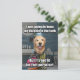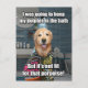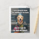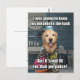 This funny meme postcard features a photograph of a golden retriever dog who is telling a joke. The joke reads, "I was going to keep my dolphin in the bath, but it's not fit for that porpoise!" Customisable ext on back reads, "A joke to make you smile."