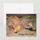 This funny postcard features a photograph of two golden retriever dogs who are "passed out" following a New Year's Eve celebration. They're surrounded by streamers, balloons, blowers and an empty bottle. Text on front says, "Happy New Year!" while text on back says, "Party like you mean it!" Both can be changed or deleted.