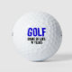 These funny "Golf" (and, as an explanatory sidebar, in fine print "Game of Lies and Flubs") golf balls are the perfect gift idea for the golfer who has a love-hate relationship with this game!