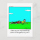 Enjoy spreading the laughter with this hilarious golf humour postcard by artist Bill Abbott. Wonderfully funny and slightly sarcastic cartoon characters in hilarious situations and settings, great fun for the wonderfully funny and slightly sarcastic character you know. Bill Abbott's cartoons have appeared in Hallmark U.K., Reader's Digest, Saturday Evening Post and other fine magazines!