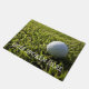Funny golf theme home welcome mats with image of a golf ball on the grass and humorous saying Golf Spoken Here. Deigned as a humorous housewarming gift for guys or place this in front of your own home for the golf fanatic.