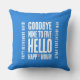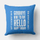 Celebrate the retirement of a soon-to-be former coworker with this funny throw pillow, which features the sentiment, "Goodbye Nine to Five Hello Happy Hour" in a white, grunge style font, with an apple martini cleverly standing in for the "Y" in "Happy" on a soothing baby blue background. Reverse shows identical design.