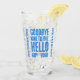 Celebrate the retirement of a soon-to-be former coworker with this funny pint glass, which features the sentiment, "Goodbye Nine to Five Hello Happy Hour" in a white, grunge style font, with an apple martini cleverly standing in for the "Y" in "Happy". Reverse shows identical design.
