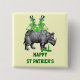 Funny humourous alternative gothic steampunk skeletons drinking green beer on a bar made from a cute vintage rhino illustration and green beer bottles with Customisable "St Patrick's day " text in green & white for your Irish St Patrick's day celebrations.