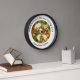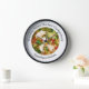 Funny kitchen wall clocks with a graphic of Grandma's best realistic looking chicken soup in the background and trendy clock face markings and text that says Grandma's Kitchen you can personalise if you like.