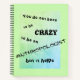 This notebook has the words "you do not have to be crazy to be an anthropologist but it helps" in creative fancy black characters, floating on a weird, slightly crazy green, aqua and light blue background with a delicate green frame. It may or may not suggest the idea that while you do not HAVE to be crazy, a bit of madness is still considered a great talent in anthropology... Of course, since this is fully customisable, you can just change the word "anthropologist" into whatever profession or hobby your madness is helping you with!