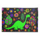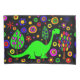 Fun green brontosaurus dinosaur and colourful trees abstract pillowcase original art.