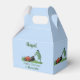 Funny green frog mowing lawn cartoon favour box