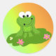 Funny Green Frog on a Lily Pad Classic Round Sticker