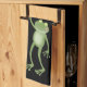 This funny green frog is catching lunch with a flyswatter. Drawn in silly cartoon illustration style.