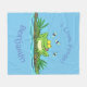 Funny green frog with flies cartoon illustration fleece blanket