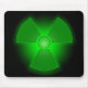 This green glowing pictogram is the symbol for radioactivity. Radioactivity is used for generating electricity in power plants. Radiation is mortal for humans and animals.