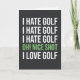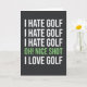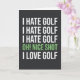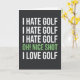 Keywords: Funny green golf card for golfer humour, I hate golf oh nice shot I love golf, Halloween, Thanksgiving, Christmas, Xmas, ornament, presents, themed, unique, gag, related, lover, granddaughter, daughter, stocking stuffer, novelty items, for her, women, retiree, retirement, retired, joke, humour, golf passion card.