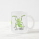 Funny green praying mantis cartoon illustration frosted glass coffee mug