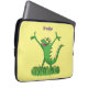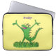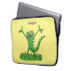 Funny green smiling animated iguana lizard laptop sleeve