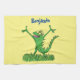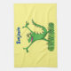 Funny green smiling animated iguana lizard tea towel