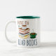 This mug is perfect for you who loves drinking tea and reading book. This also can be a gift for your beloved friends or families. This has a green and white colour make it looked calm and fresh. The funny book and cup of coffee design make it look so funny and colourful.