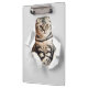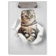 Funny Grey Cat Popping thru Torn Paper Illusion Clipboard
